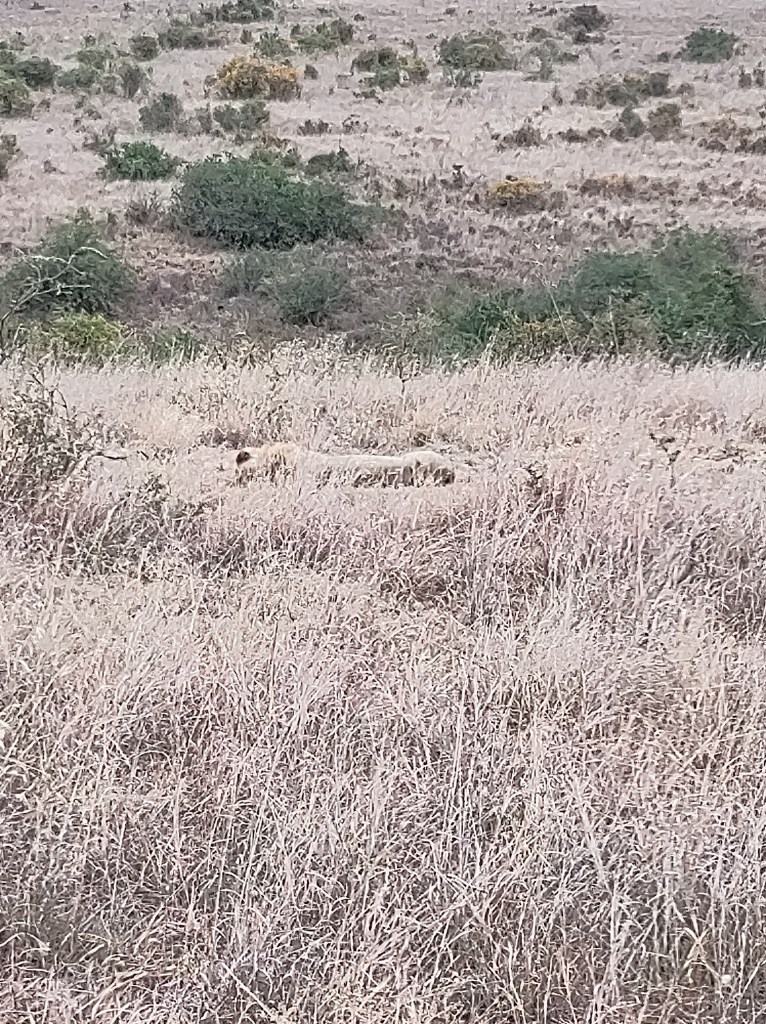 Close to the car we saw baboons, impala, ostriches, guinea fowl, rhinos, wildebeest and a lion who was on the way to have a wildebeest for breakfast until some birds alerted his prey to the danger.