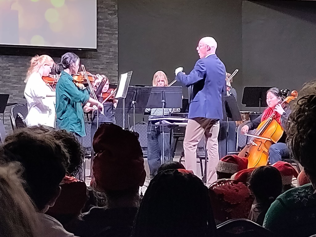Yesterday evening was the Christmas music concert. The large meeting space known as Centennial Hall (built some years ago to celebrate the 100th anniversary of RVA) was decorated in festive tradition.