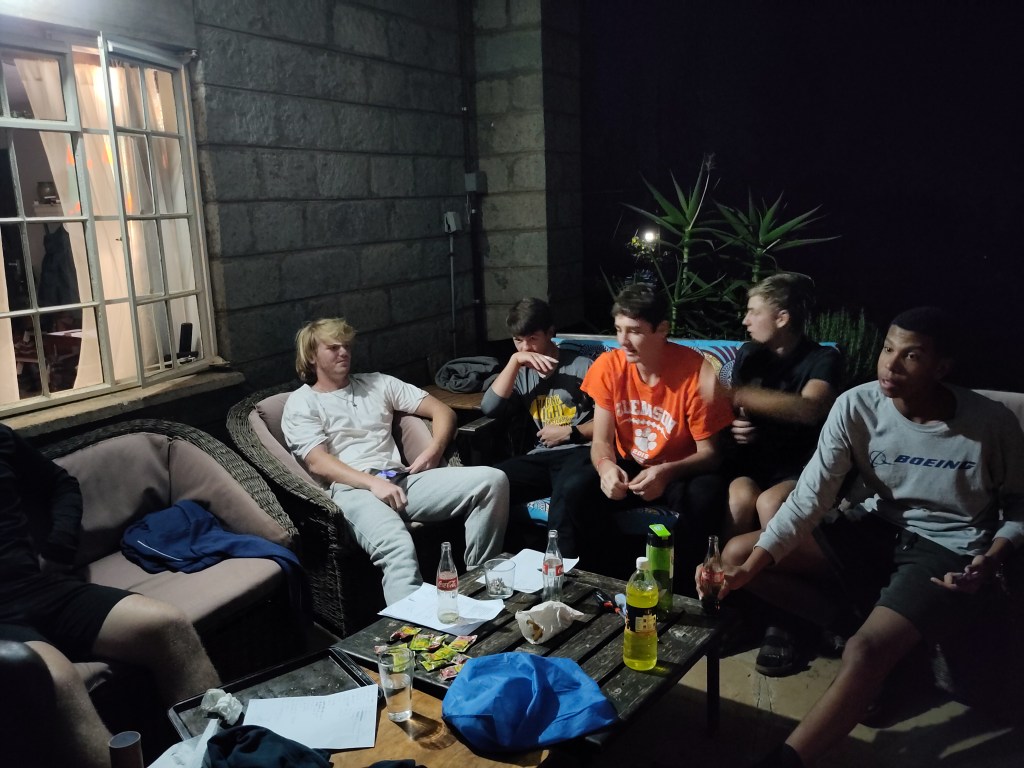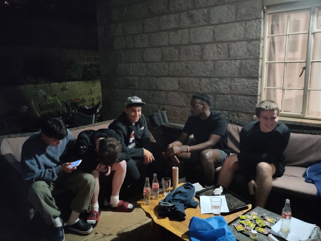 Saturday evening saw us entertaining ten Senior (12th Grade) boys. We have taken over a Caring Community group from two staff who are on home assignment for the rest of the year, and we have to occupy the boys for three evenings a term.