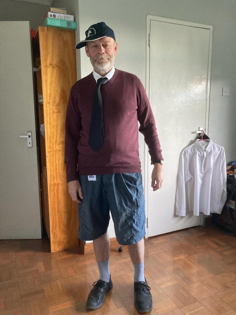 The theme another day was Dress as Your Former Self. Here we see me attempting to look like a primary school pupil. I am not sure if it was good luck or bad luck that this day fell on the date that I gave my chapel talk to all the high school students.