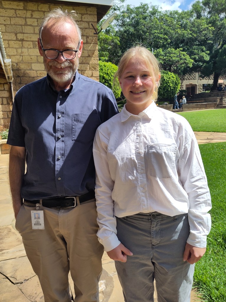 Every so often the students have a bit of fun dressing up. A couple of weeks ago, there was Dress as a Teacher Day. Here you see me with one of my students who did a good job of mimicking me (she was disappointed I wasn’t wearing my white shirt that day):